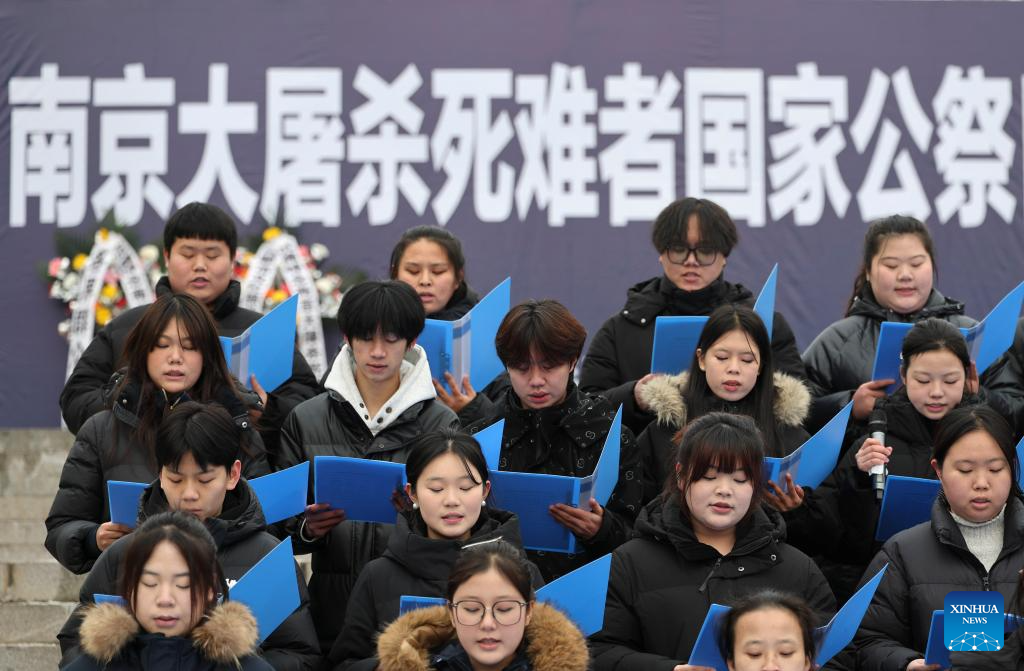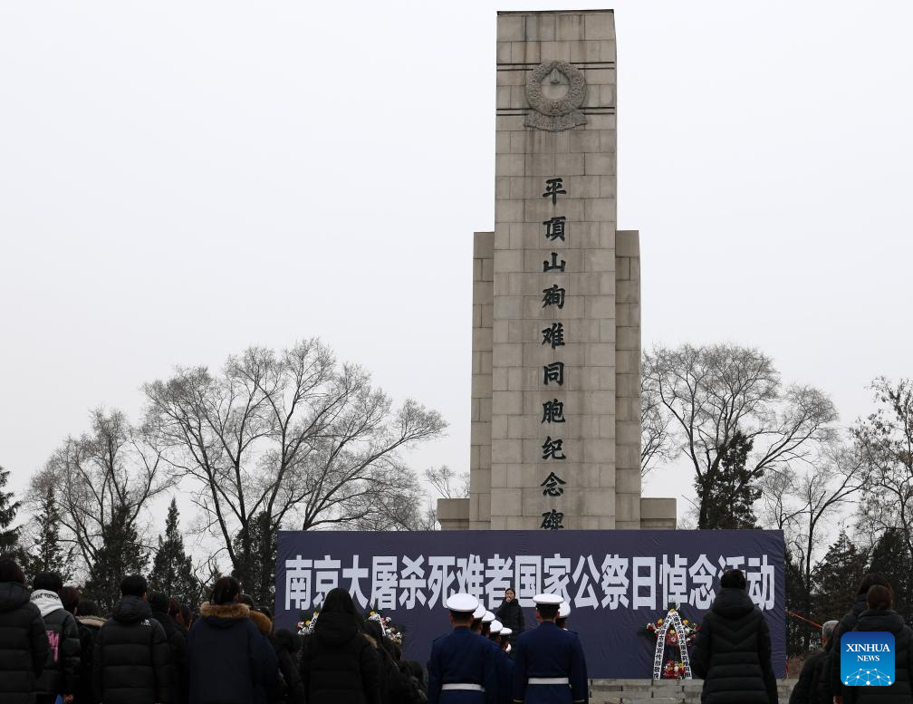A memorial ceremony for the Nanjing Massacre victims is held at the Pingdingshan Massacre Memorial Hall in Fushun, northeast China’s Liaoning Province, Dec. 13, 2025. The 12th national memorial day was observed on Saturday across the country to honor about 300,000 victims killed by Japanese troops during the Nanjing Massacre, in a year that marks the 80th anniversary of the end of World War II (WWII). (Xinhua/Li Gang)
