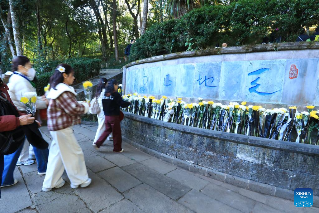 People pay tributes to martyrs at a monument of a memorial hall for the Chinese People’s War of Resistance against Japanese Aggression in western Yunnan, in Tengchong, southwest China’s Yunnan Province, Dec. 13, 2025. The 12th national memorial day was observed on Saturday across the country to honor about 300,000 victims killed by Japanese troops during the Nanjing Massacre, in a year that marks the 80th anniversary of the end of World War II (WWII). (Photo by Gong Zujin/Xinhua)