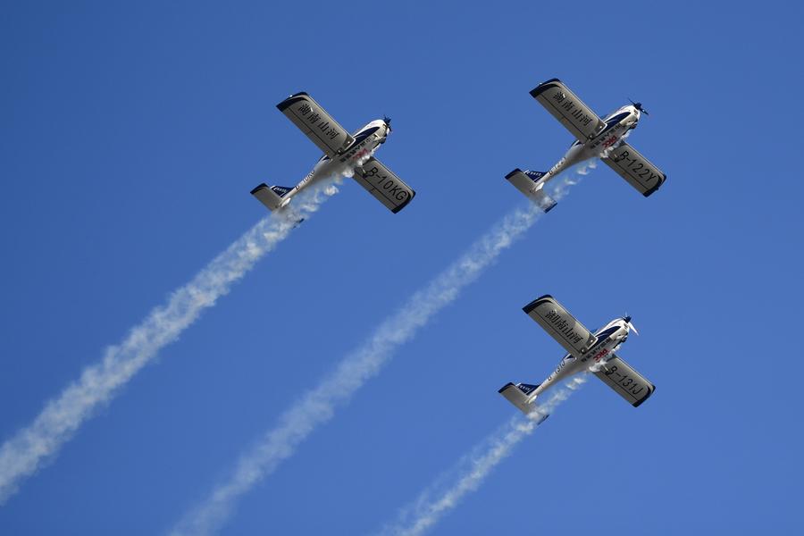This photo taken on Nov. 21, 2025 shows an air show during the 2025 Hunan International General Aviation and Low Altitude Economy Industry Expo at the Lusong Airport of Zhuzhou City, central China’s Hunan Province. (Xinhua/Chen Zhenhai)