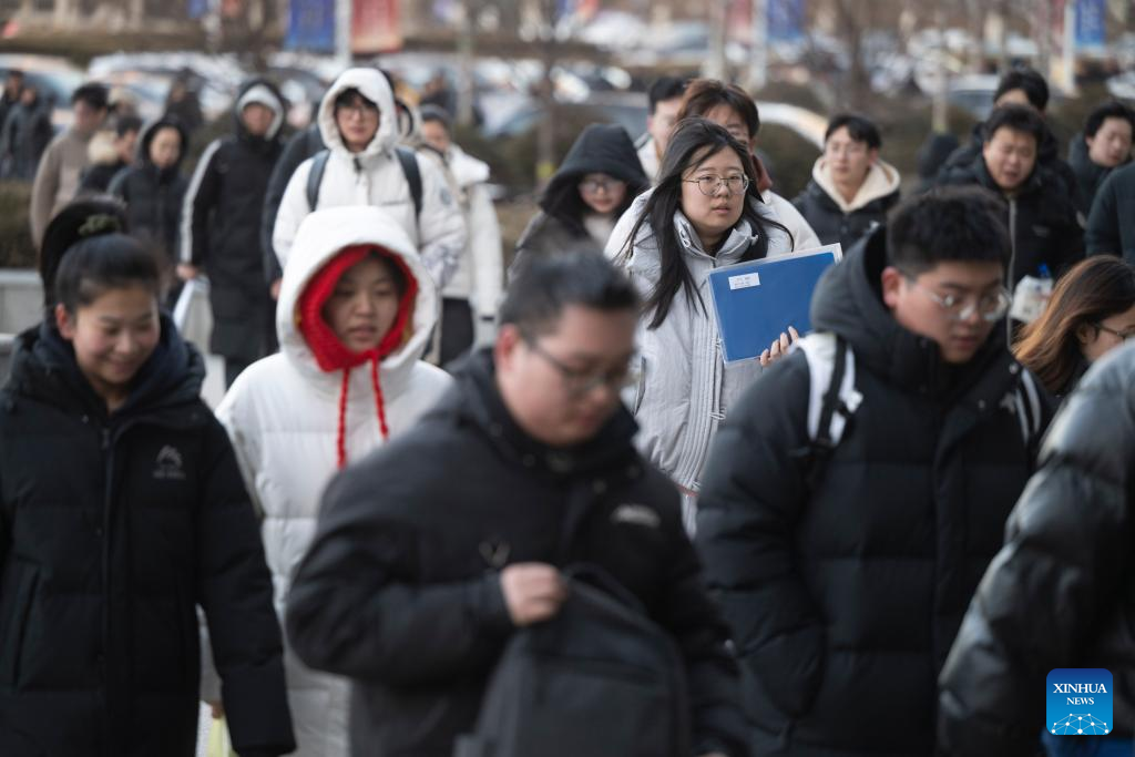 Examinees prepare to enter an examination site for the 2026 postgraduate entrance exam in Harbin, northeast China’s Heilongjiang Province, Dec. 20, 2025. China’s national exam for postgraduate enrolment kicked off on Saturday. (Xinhua/Zhang Tao)