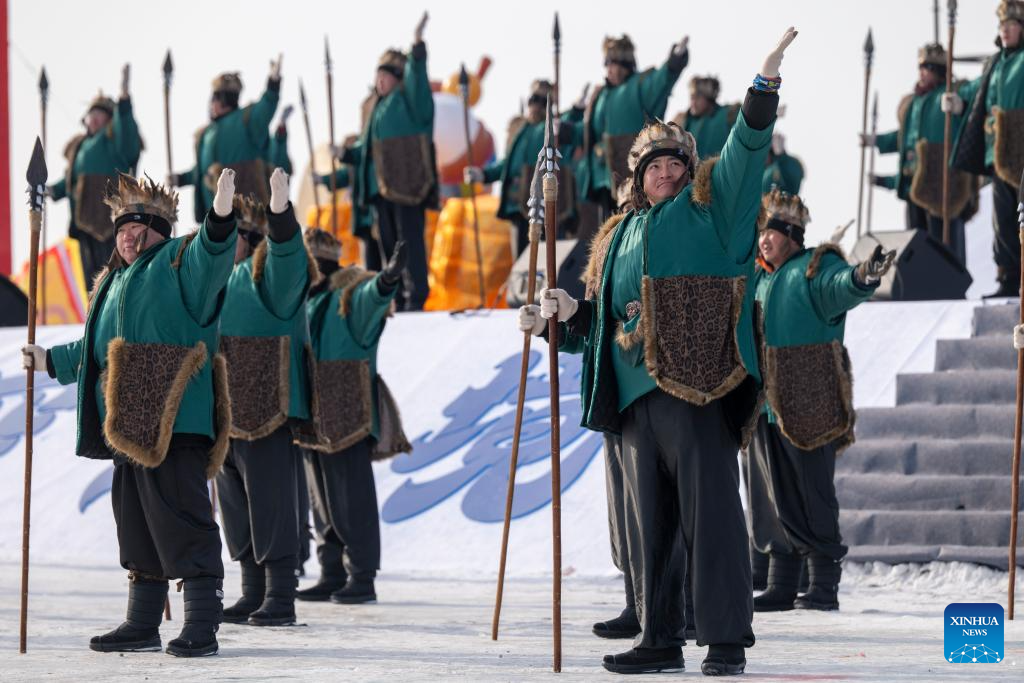 Actors perform during the 2026 Xingkai Lake winter fishing festival at Xingkai Lake in northeast China’s Heilongjiang Province, Jan. 17, 2026. The festival was kicked off on Saturday on the shore of Xingkai Lake, a boundary lake between China and Russia, presenting a fully-integrated immersive experience in folk arts, sports and amusements for visitors. (Xinhua/Zhang Tao)