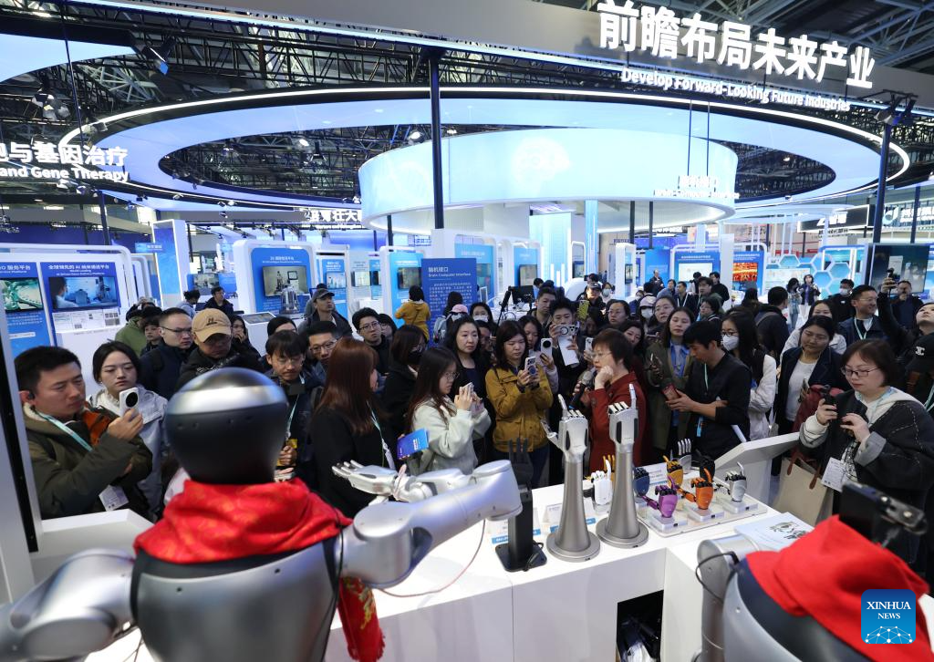 People visit the Zhongguancun Exhibition Center in Beijing, capital of China, March 24, 2026. Themed “Full Integration Between Technological and Industrial Innovation,” this year’s Zhongguancun Forum will be held in Beijing from March 25 to 29. More than 1,000 guests from over 100 countries and regions are expected to participate in the forum, which features more than 100 events. (Xinhua/Zhang Chenlin)
