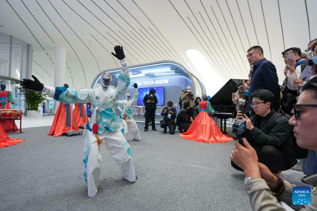 A robot stages a performance at the Zhongguancun International Innovation Center in Beijing, capital of China, March 24, 2026. Themed “Full Integration Between Technological and Industrial Innovation,” this year’s Zhongguancun Forum will be held in Beijing from March 25 to 29. More than 1,000 guests from over 100 countries and regions are expected to participate in the forum, which features more than 100 events. (Xinhua/Zhang Chenlin)
