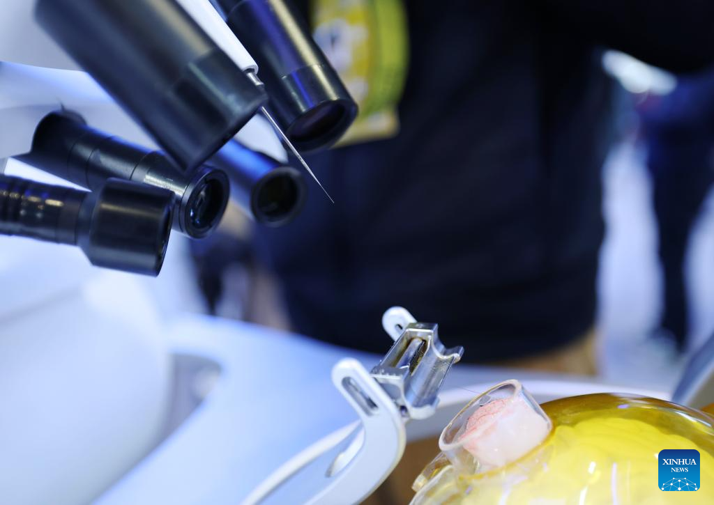 This photo taken on March 24, 2026 shows a high-throughput invasive brain-computer interface system at the Zhongguancun Exhibition Center in Beijing, capital of China. Themed “Full Integration Between Technological and Industrial Innovation,” this year’s Zhongguancun Forum will be held in Beijing from March 25 to 29. More than 1,000 guests from over 100 countries and regions are expected to participate in the forum, which features more than 100 events. (Xinhua/Zhang Chenlin)