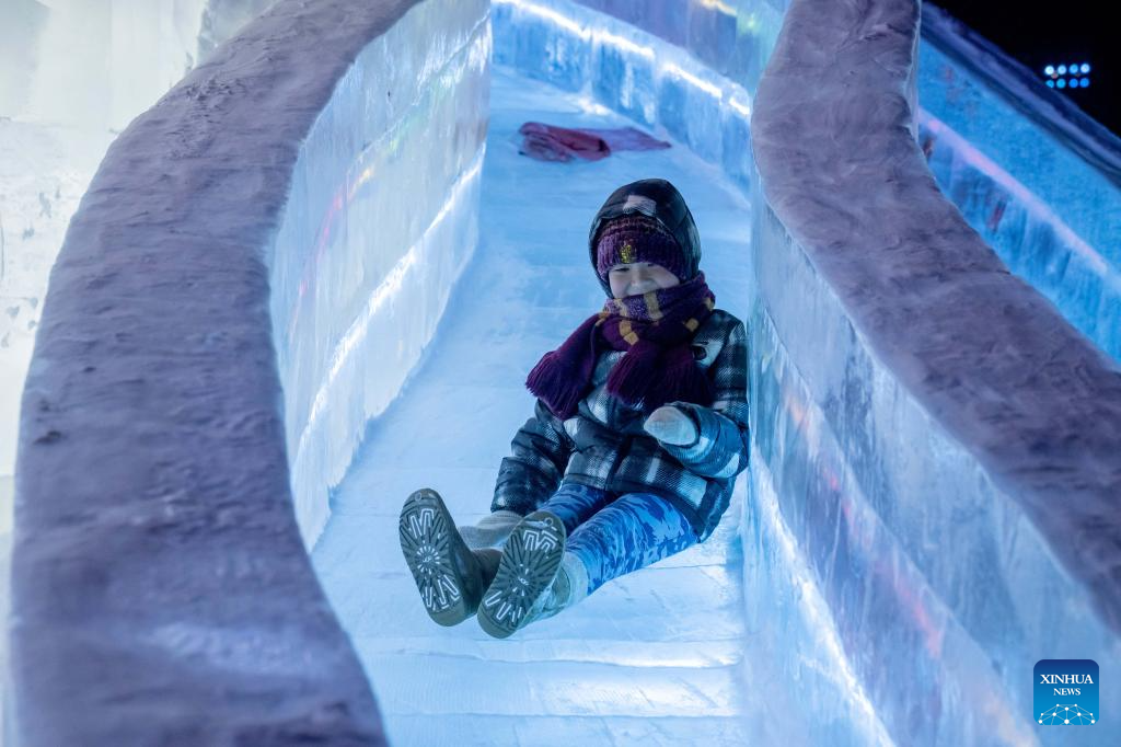 A child plays at an ice and snow theme park in Manzhouli, north China’s Inner Mongolia Autonomous Region, Dec. 20, 2025. The 22nd China-Russia-Mongolia international ice and snow festival opened here on Saturday.