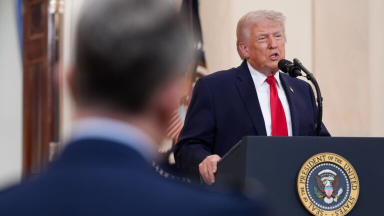 US President Donald Trump during a prime-time address to the nation in the Cross Hall of the White House in Washington, DC, US, on Wednesday, April 1, 2026.