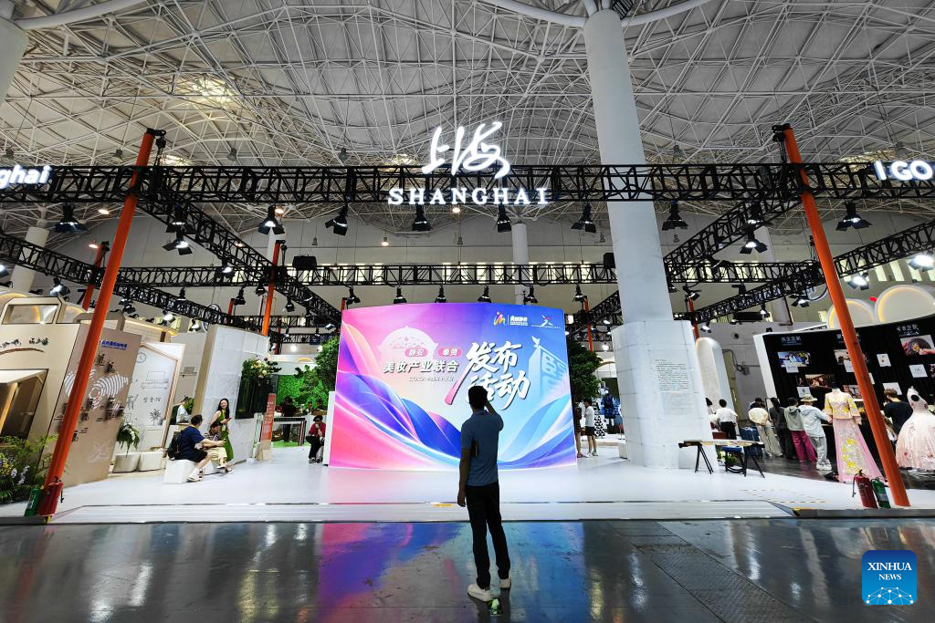 The exhibition booth of Shanghai, guest province of honor, is pictured at the Hainan International Convention and Exhibition Center, the main venue for the upcoming sixth China International Consumer Products Expo (CICPE), in Haikou, south China’s Hainan Province, April 11, 2026. Scheduled to take place in south China’s Hainan Province from April 13 to 18, this expo will see the participation of more than 3,400 brands from over 60 countries and regions. (Xinhua/Pu Xiaoxu)