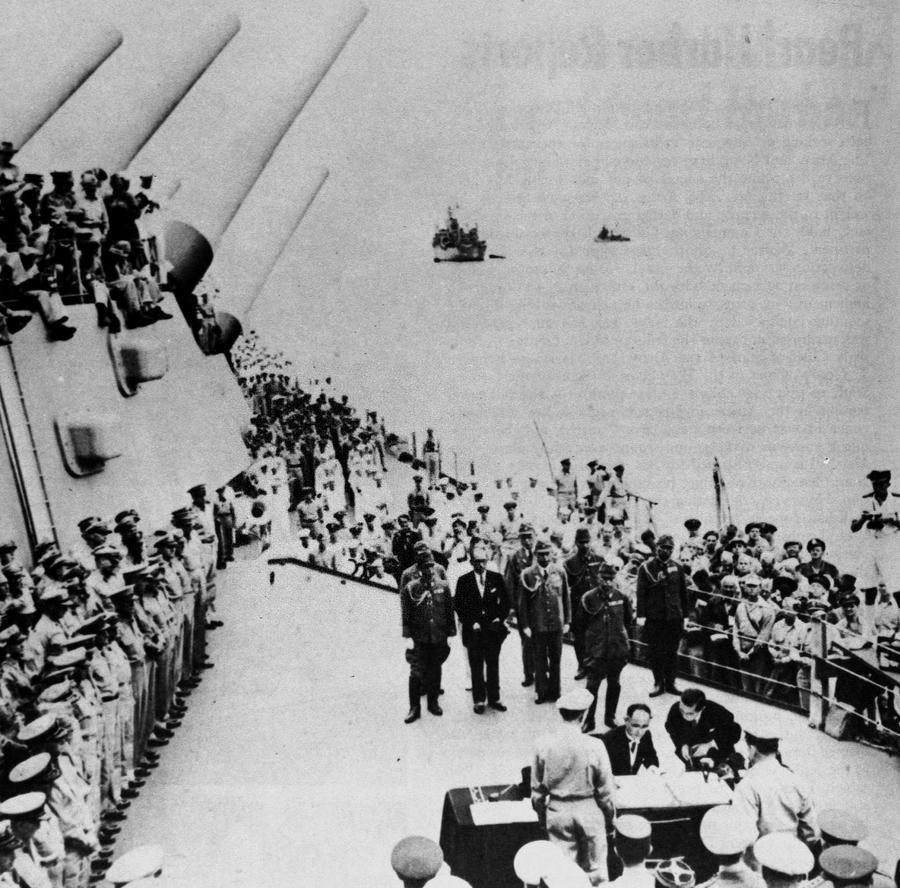The signing ceremony was held in Nanjing on Sept. 9, 1945. Yasuji Okamura, then commander-in-chief of Japan’s China Expeditionary Army, handed the official Japanese Instrument of Surrender to China. Seven days prior, on the USS Missouri, a U.S. battleship, in Tokyo Bay, then Japan’s Foreign Minister Mamoru Shigemitsu had already signed Japan’s surrender to the Allies, including China.