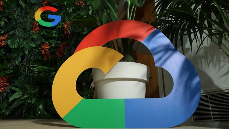 A Google cloud logo is seen at the announcement of Google’s biggest-ever investment in Germany on November 11, 2025 in Berlin, Germany.