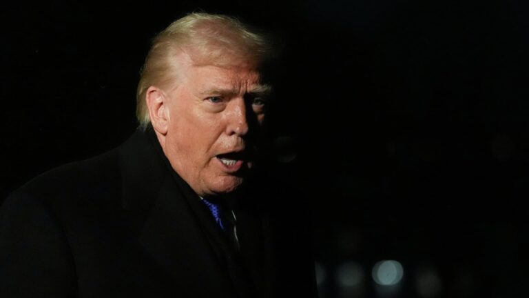 U.S. President Donald Trump speaks with the media before boarding Marine One for travel to Florida from the South Lawn of the White House in Washington, D.C., U.S., Feb. 6, 2026.