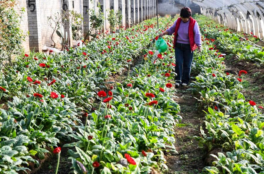A farmer works at a flower greenhouse in Jiyuan City, central China’s Henan Province, Dec. 6, 2025. (Photo by Miao Qiunao/Xinhua)