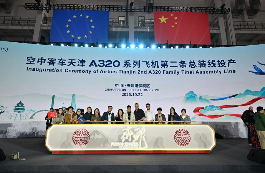 TIANJIN, Oct. 22 (Xinhua) — Airbus on Wednesday inaugurated its latest Final Assembly Line (FAL) for A320 family aircraft in the northern Chinese port city of Tianjin, the second of its kind in both China and Asia as a whole.
