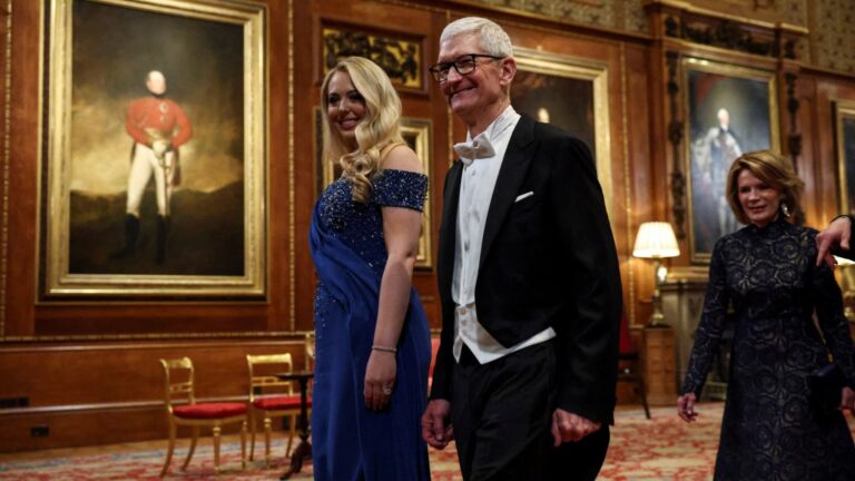 Apple CEO Tim Cook walks to attend the State Banquet at Windsor Castle, in Windsor, Britain, Sept. 17, 2025.