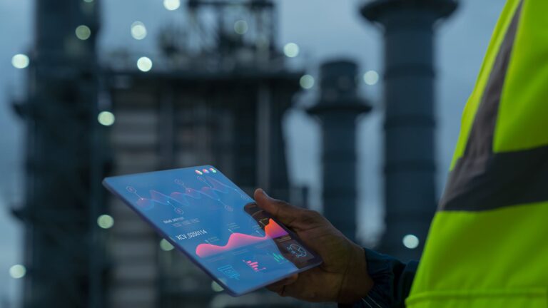 Engineer working with statistical analysis report. Digital technology and Artificial Intelligence (AI) concept.