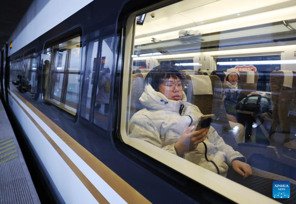 Passengers wait for departure on a train bound for Tangshan in north China’s Hebei Province, at Beijing Tongzhou Railway Station in Beijing, capital of China, Dec. 30, 2025.
