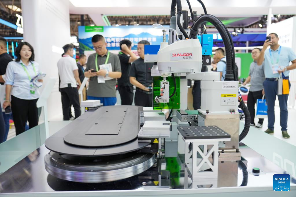 A demonstration of the Paintpro system, which detects and repairs paint defects on vehicles, is seen at the booth of SpeedBot in the Smart Vehicle Chain area of the third China International Supply Chain Expo (CISCE) in Beijing, capital of China, July 17, 2025. Held from July 16 to 20, the 2025 CISCE kicked off in Beijing on Wednesday. A key innovation for this edition is the “Debut Zone,” dedicated to the global premieres of new products, technologies, and ecosystems, showcasing breakthrough innovations that drive industrial collaboration. (Xinhua/Zhang Chenlin)