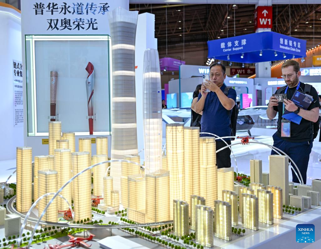 Visitors take photos of a sandbox model at the booth of PwC in the Advanced Manufacturing Chain area of the third China International Supply Chain Expo (CISCE) in Beijing, capital of China, July 17, 2025. Held from July 16 to 20, the 2025 CISCE kicked off in Beijing on Wednesday. A key innovation for this edition is the “Debut Zone,” dedicated to the global premieres of new products, technologies, and ecosystems, showcasing breakthrough innovations that drive industrial collaboration. (Xinhua/Chen Shuo)