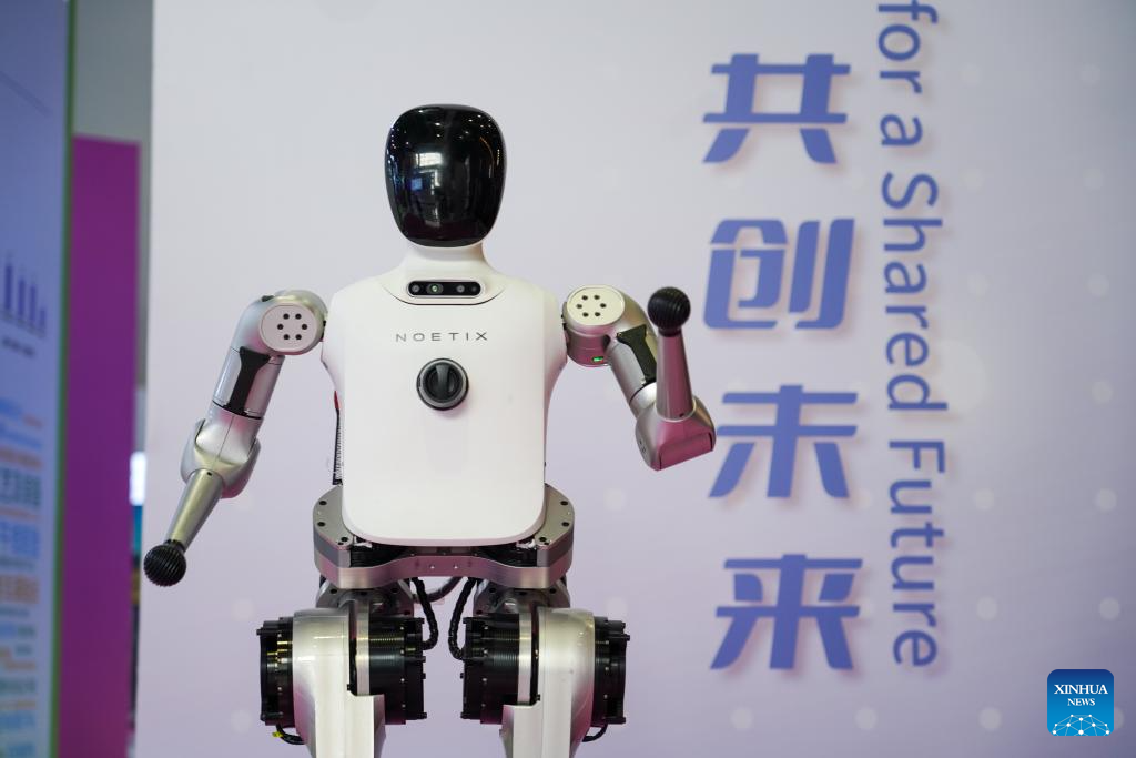 A robot is seen at the Innovation Chain area of the third China International Supply Chain Expo (CISCE) in Beijing, capital of China, July 16, 2025. Held from July 16 to 20, the 2025 CISCE kicked off in Beijing on Wednesday. A key innovation for this edition is the “Debut Zone,” dedicated to the global premieres of new products, technologies, and ecosystems, showcasing breakthrough innovations that drive industrial collaboration. (Xinhua/Wang Jingyi)