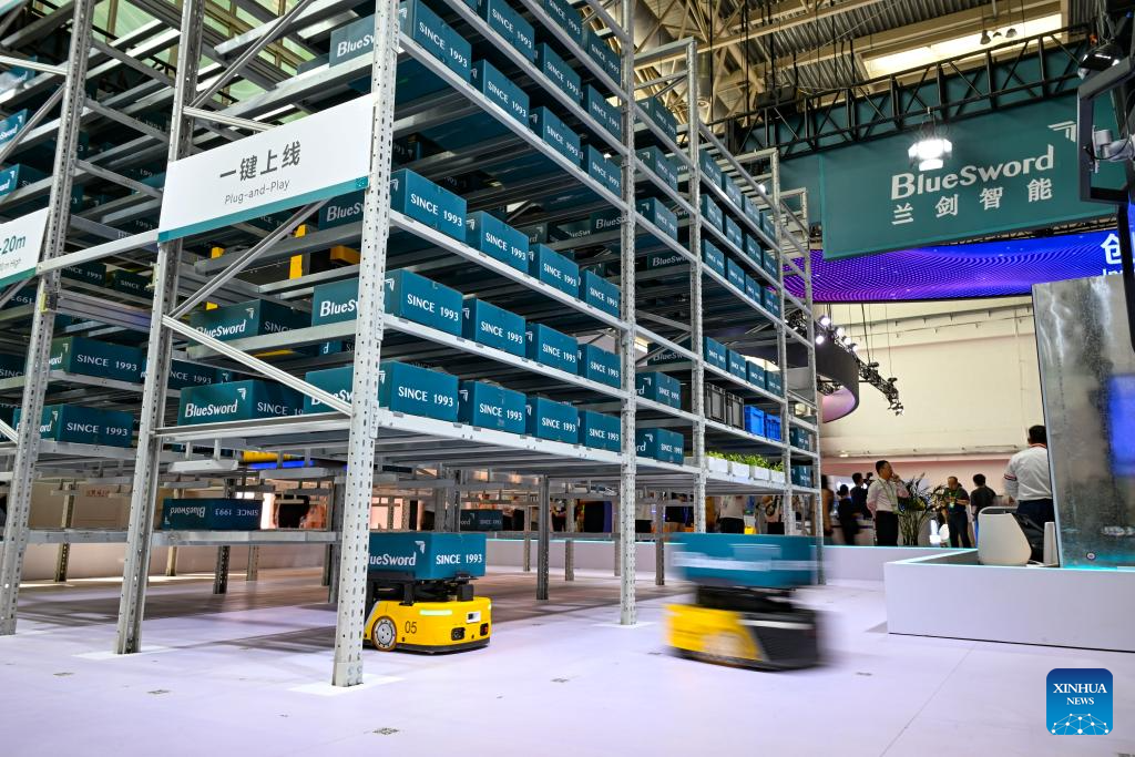 This photo taken on July 16, 2025 shows a scene at the booth of BlueSword in the Advanced Manufacturing Chain area of the third China International Supply Chain Expo (CISCE) in Beijing, capital of China. Held from July 16 to 20, the 2025 CISCE kicked off in Beijing on Wednesday. A key innovation for this edition is the “Debut Zone,” dedicated to the global premieres of new products, technologies, and ecosystems, showcasing breakthrough innovations that drive industrial collaboration. (Xinhua/Chen Shuo)