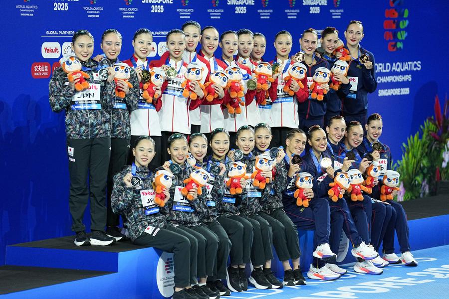 SINGAPORE, July 20 (Xinhua) — China delivered a flawless performance in the artistic swimming team free routine at the World Aquatics Championships, earning them top spot on the podium here on Sunday.