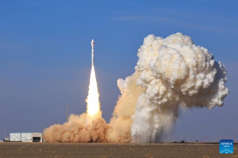 The Lijian-1, also known as Kinetica-1 Y11, carrier rocket carrying 9 satellites, including one from the United Arab Emirates, blasts off from the Dongfeng commercial space innovation pilot zone near the Jiuquan Satellite Launch Center in northwest China, Dec. 10, 2025. The rocket blasted off at 12:03 p.m. (Beijing Time) and successfully sent the satellites into their planned orbits. (Photo by Li Yunxi/Xinhua)
