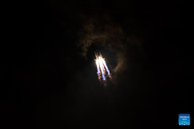 A Long March-5 rocket carrying a new communication technology test satellite blasts off from the Wenchang Space Launch Site in south China’s Hainan Province, Dec. 20, 2025. Launched at 8:30 p.m. (Beijing Time), the satellite has successfully entered its planned orbit. It will be mainly used to carry out multi-band and high-speed communication technology validation tests. The launch marks the 618th mission by the Long March carrier rocket series. (Photo by Du Xinxin/Xinhua)