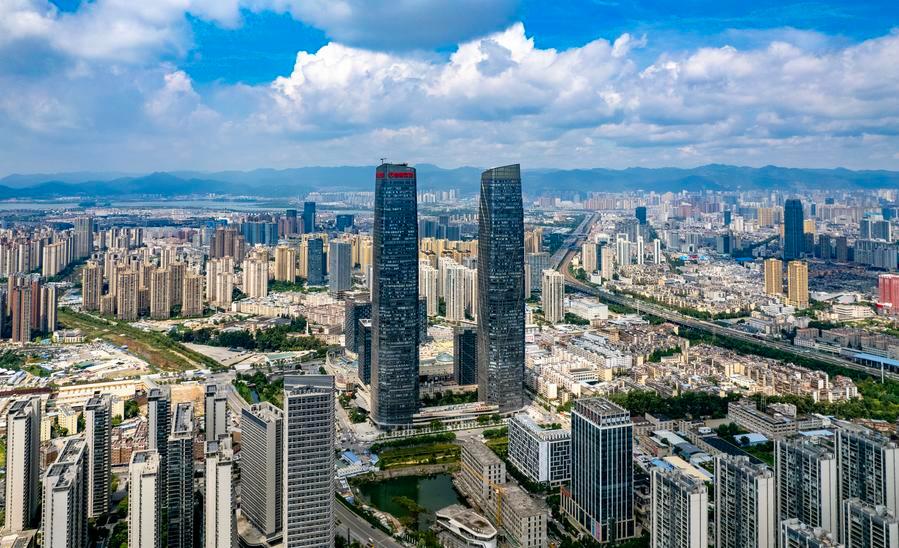 An aerial drone photo taken on Sept. 4, 2025 shows a city view in Kunming, southwest China’s Yunnan Province.(Xinhua/Chen Xinbo)