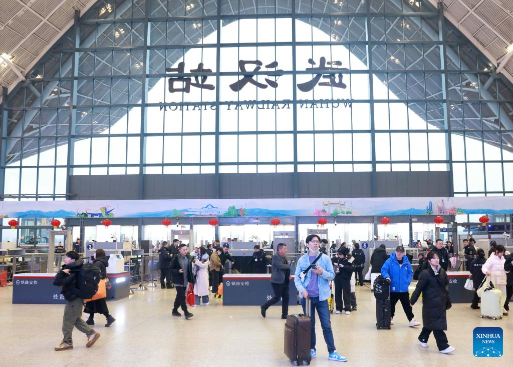 Passengers wait for trains at the Wuhan Railway Station in Wuhan, central China’s Hubei Province, Feb. 15, 2026. Over 285 million inter-regional passenger trips are predicted across China on Sunday, the first day of this year’s nine-day Spring Festival holiday.