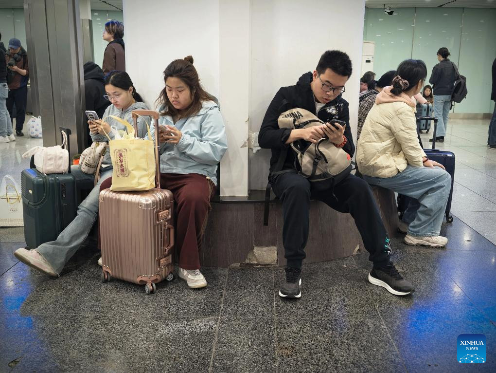 Passengers wait to take the train at Beijing South Railway Station in Beijing, capital of China, on April 6, 2026. An estimated 845.38 million passenger trips were made across China during the three-day Qingming Festival holiday, up 6 percent year on year, transportation authorities said on Monday.