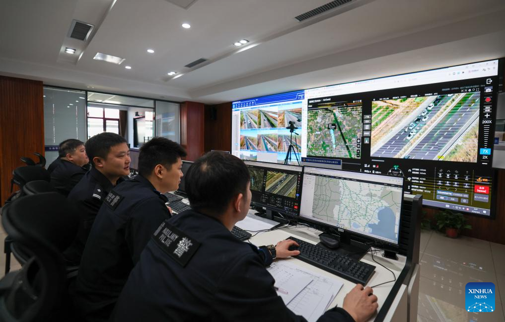 Staff members conduct an accident response via a drone video transmission system at the expressway brigade of the traffic management bureau in north China’s Tianjin, April 6, 2026 An estimated 778.45 million road trips were made across China during the three-day Qingming Festival holiday, rising 5.8 percent from the same period last year, according to the Ministry of Transport. (Xinhua/Sun Fanyue)