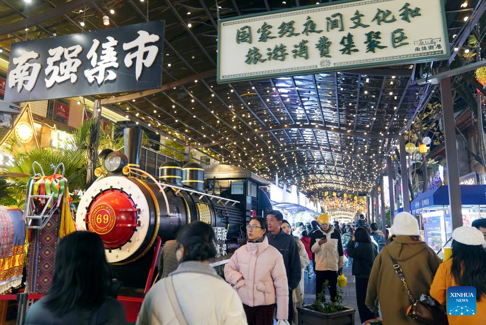 Tourists visit Nanqiang Street in Kunming, southwest China’s Yunnan Province, Jan. 1, 2026. China’s economy kicked off 2026 with robust momentum, as evidenced by bustling economic activity in the year’s first days. (Photo by Liang Zhiqiang/Xinhua)