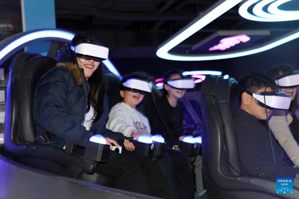People enjoy virtual reality experience at a shopping mall in Boxing County of Bingzhou, east China’s Shandong Province on Jan. 2, 2026. China’s economy kicked off 2026 with robust momentum, as evidenced by bustling economic activity in the year’s first days. (Photo by Chen Bin/Xinhua)