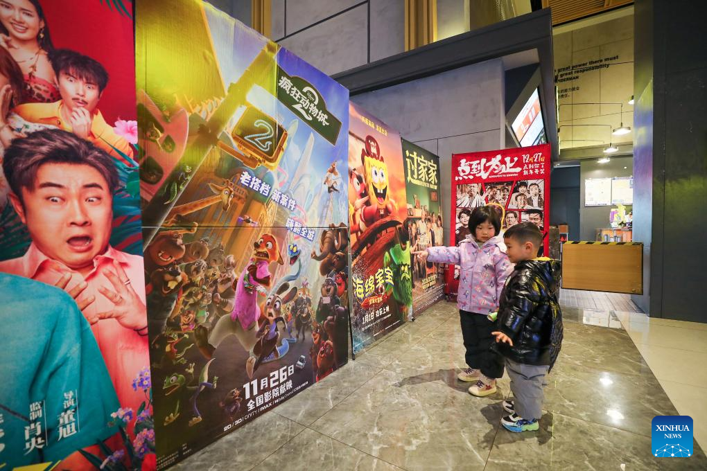 Children check out a poster for the movie “Zootopia II” at a cinema in Hai’an, east China’s Jiangsu Province on Jan. 2, 2026. China’s economy kicked off 2026 with robust momentum, as evidenced by bustling economic activity in the year’s first days. (Photo by Gu Binbin/Xinhua)