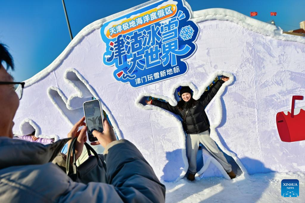 Tourists take photos at an ocean resort in Binhai New Area, north China’s Tianjin on Jan. 2, 2026. China’s economy kicked off 2026 with robust momentum, as evidenced by bustling economic activity in the year’s first days. (Photo by Du Penghui/Xinhua)
