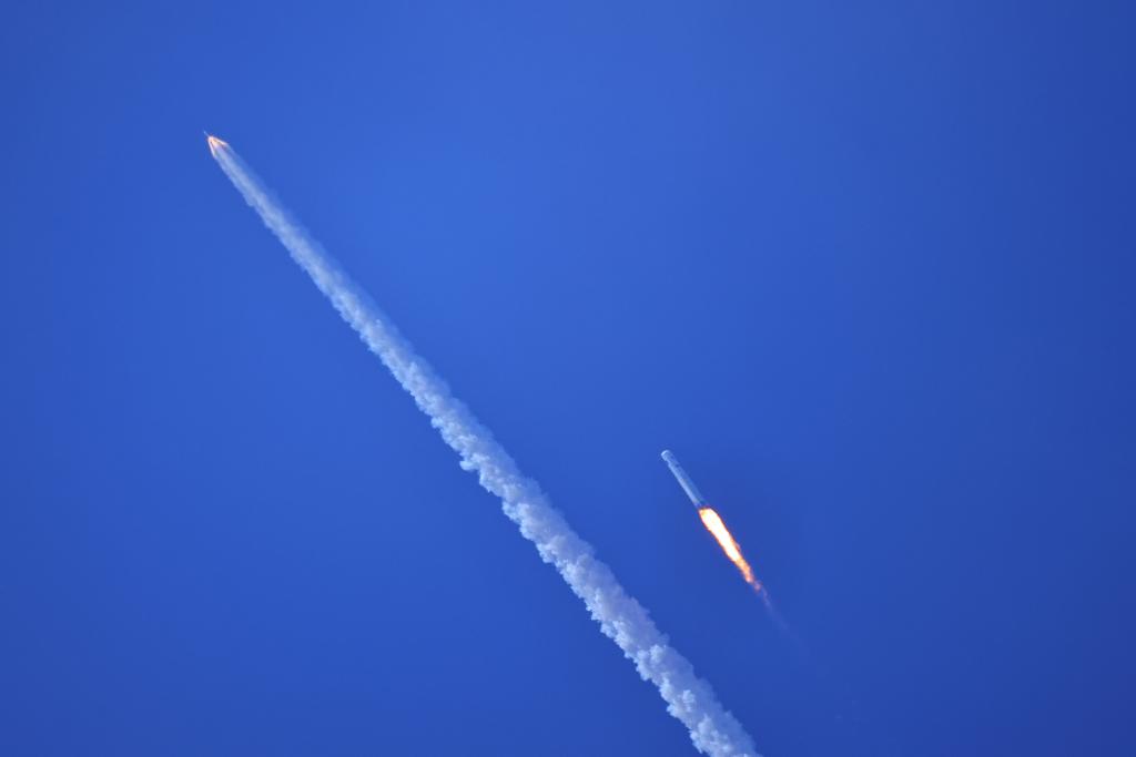 At an altitude of about 110 km, the rocket deployed its four grid fins, just like a bird spreading its wings, getting ready for the return and recovery.