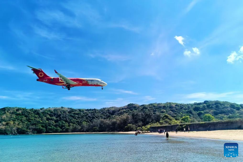 A C909 jetliner lands at Con Dao Airport, Vietnam, April 19, 2025. Two C909 aircraft, wet leased by Chengdu Airlines to Vietnam’s Vietjet Air, began service on April 19, 2025. Saturday marks the ninth anniversary of the commercial operation of China’s domestically developed regional jetliner C909. So far, 166 C909 aircraft have been delivered, which have handled over 24 million passenger trips. (Xinhua)