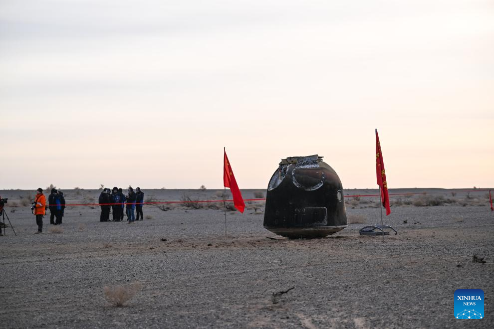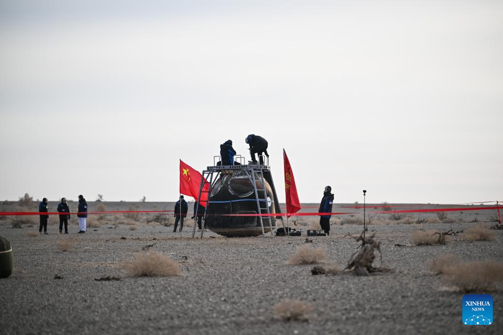 JIUQUAN, Jan. 19 (Xinhua) — The return capsule of the Shenzhou-20 spaceship, carrying no astronauts, touched down at the Dongfeng landing site in north China’s Inner Mongolia Autonomous Region at 9:34 a.m. (Beijing Time) on Monday, according to the China Manned Space Agency (CMSA).