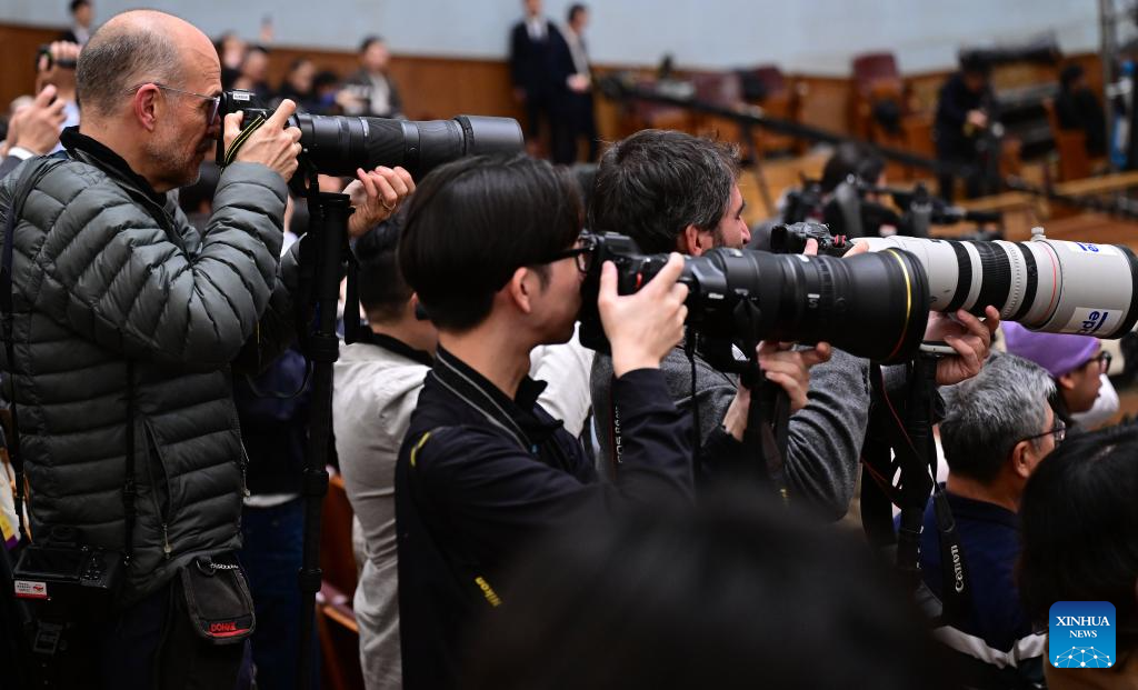 Journalists work at the opening meeting of the fourth session of the 14th Chinese People’s Political Consultative Conference (CPPCC) National Committee at the Great Hall of the People in Beijing, capital of China, March 4, 2026. (Xinhua/Li He)