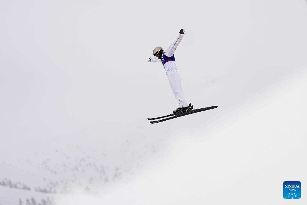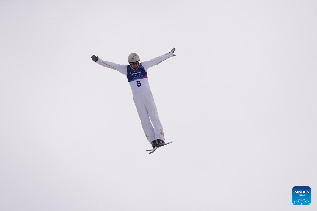Wang Xindi of China competes during the freestyle skiing men’s aerials final 2 at the Milan-Cortina 2026 Olympic Winter Games in Livigno, Italy, Feb. 20, 2026. (Xinhua/Hu Chao)