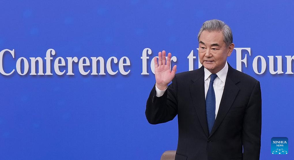 Chinese Foreign Minister Wang Yi, also a member of the Political Bureau of the Communist Party of China Central Committee, waves after a press conference on China’s foreign policy and external relations on the sidelines of the fourth session of the 14th National People’s Congress (NPC) in Beijing, capital of China, March 8, 2026. (Xinhua/Wang Xi)