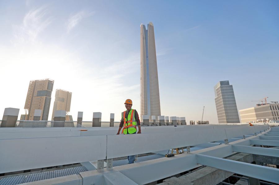 A Chinese worker is seen at the construction site of the Central Business District (CBD) of Egypt’s new administrative capital, 45 kilometers east of Cairo, Egypt, Nov. 22, 2023.  (Xinhua/Sui Xiankai)■
