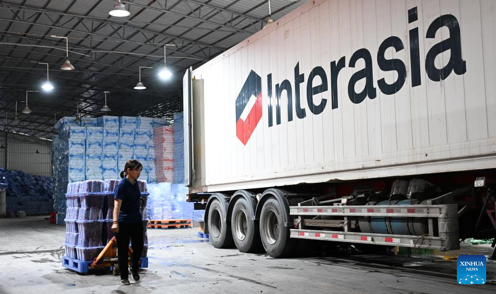 A staff member transports packed lychees for export at a company in Gaozhou City, south China’s Guangdong Province, June 4, 2025.