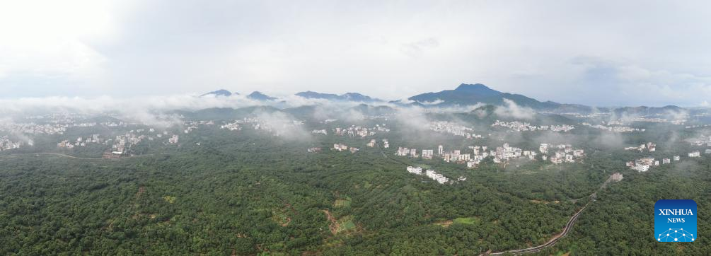 This panoramic drone photo taken on May 19, 2025 shows lychee orchards in Gaozhou City, south China’s Guangdong Province.