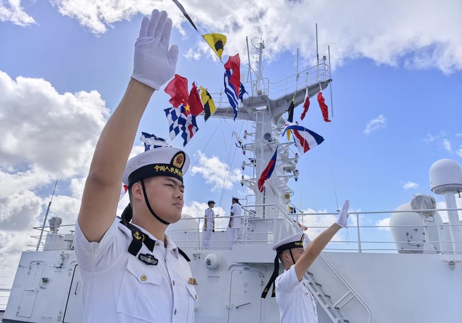 Tonga’s acting Prime Minister Taniela Fusimalohi, along with military and political dignitaries, the Chinese ambassador to Tonga, local residents, representatives of overseas Chinese and Chinese enterprises, came to the pier to greet the vessel.