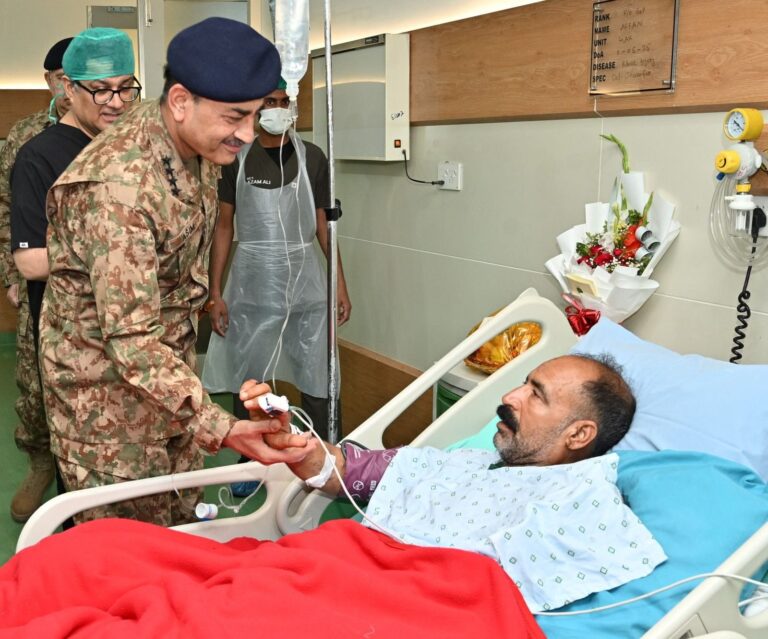 According to the Inter-Services Public Relations (ISPR), during the visit, the COAS individually met the injured personnel, lauded their exceptional bravery and steadfast devotion to duty, and reaffirmed the unwavering commitment of the Pakistan Armed Forces to their continued care, rehabilitation, and welfare.