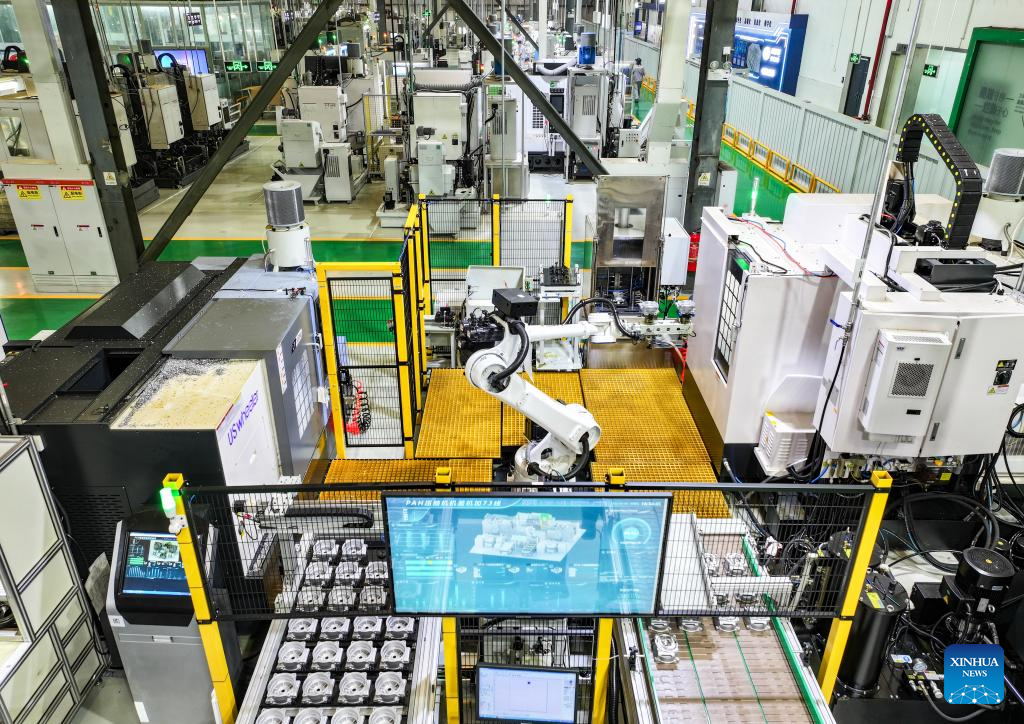 A drone photo shows an automated workshop at the precision engineering base of Chongqing Shunduoli Motor-vehicle Co., Ltd. in Beibei District of Chongqing, southwest China, May 9, 2025. The combined economic output of southwest China’s Sichuan Province and Chongqing Municipality has exceeded 10 trillion yuan (about 1.44 trillion U.S. dollar) in 2025, accounting for approximately 7.2 percent of the national total. (Xinhua/Wang Quanchao)