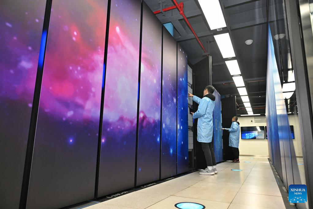Researchers inspect devices at the National Supercomputing Center in Tianfu New Area, southwest China’s Sichuan Province, Jan. 10, 2025. The combined economic output of southwest China’s Sichuan Province and Chongqing Municipality has exceeded 10 trillion yuan (about 1.44 trillion U.S. dollar) in 2025, accounting for approximately 7.2 percent of the national total. (Xinhua/Liu Kun)