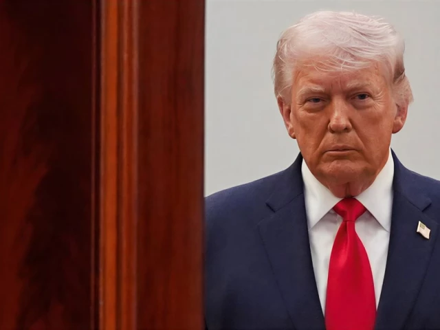 President Donald Trump arrives from the Blue Room to speak about the Iran war from the Cross Hall of the White House on Wednesday, April 1, 2026, in Washington. PHOTO: REUTERS