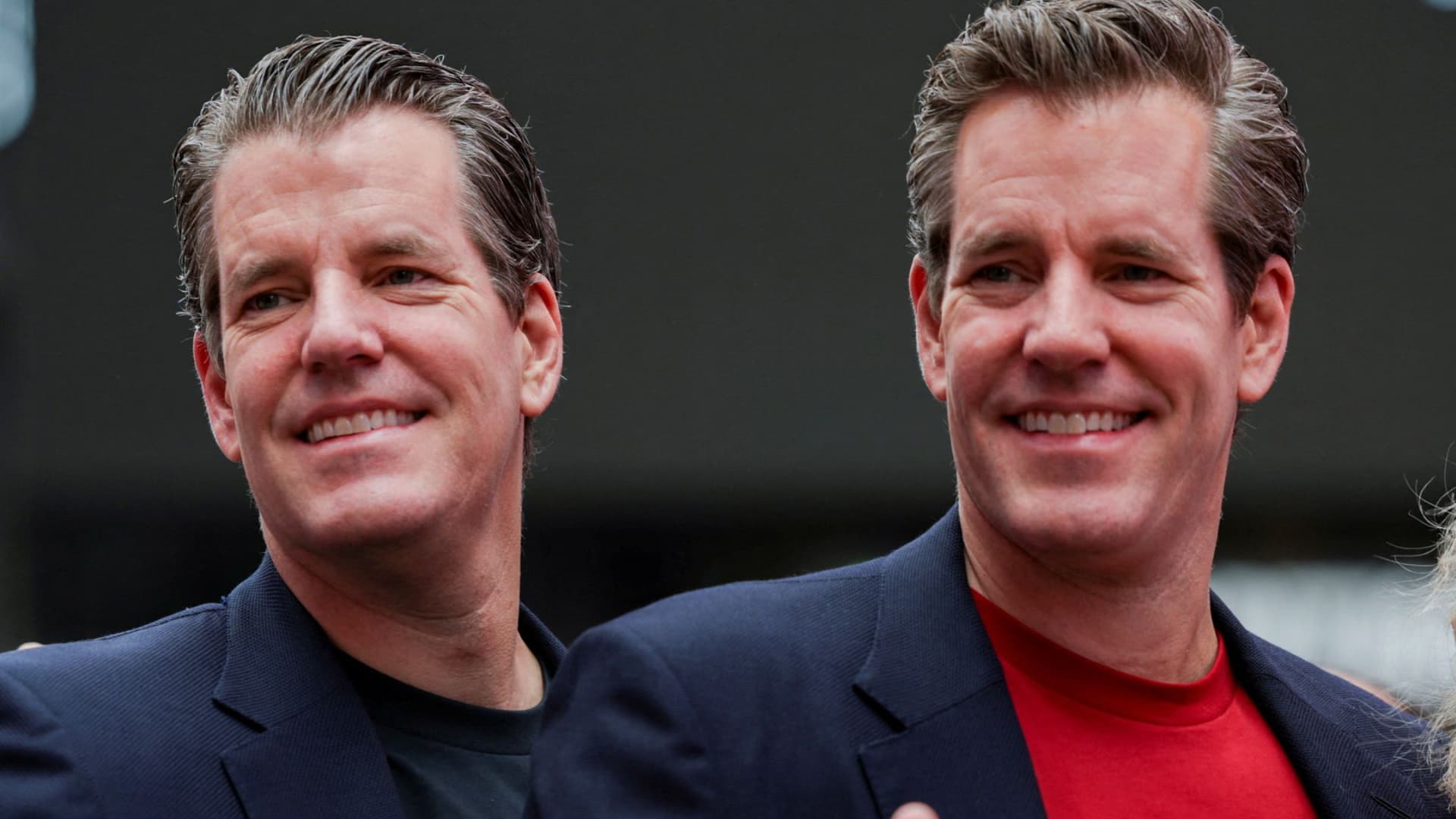 Gemini Co-founders Tyler Winklevoss and Cameron Winklevoss attend the company’s IPO at the Nasdaq MarketSite in New York City, U.S., Sept. 12, 2025.