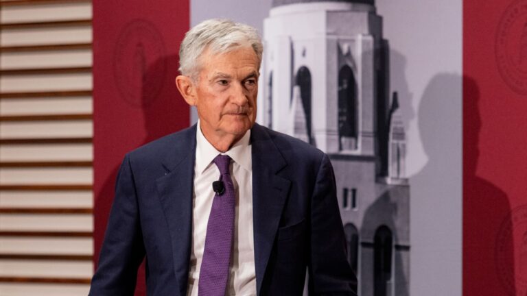 Jerome Powell, chairman of the US Federal Reserve, during the Hoover Institution’s George P. Shultz Memorial Lecture Series in Stanford, California, US, on Monday, Dec. 1, 2025.